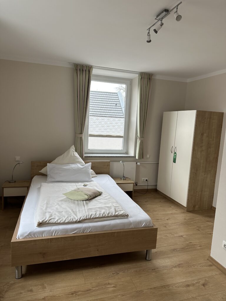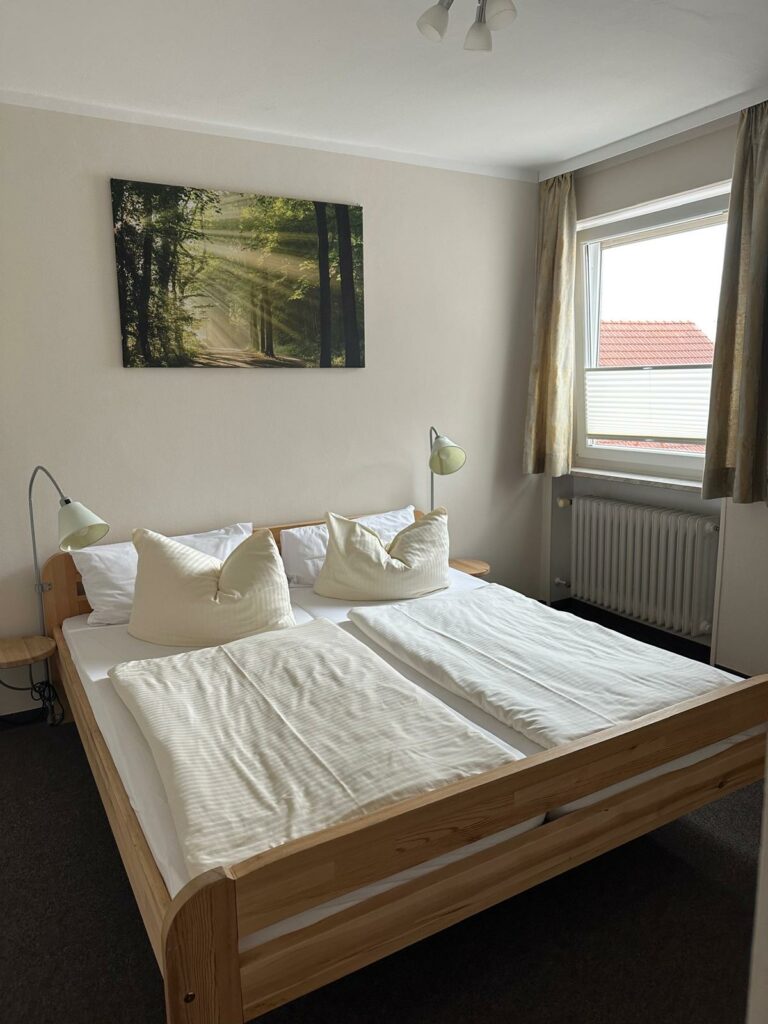 Unsere Zimmer sind ausgestattet mit: Einzelbetten oder Queensbett eigenem Bad mit Dusche und WC Fernseher Business-Ecke kostenloses WLAN Klimaanlage Wohlfühlfaktor eines Familienbetriebes Zimmerpreise: Einzelzimmer 56.- € Doppelzimmer 82.- € Frühstück 9.- € pro Person und Nacht Jetzt Buchen Zur Zimmerbuchung
